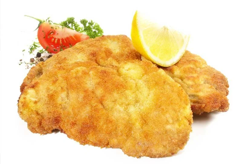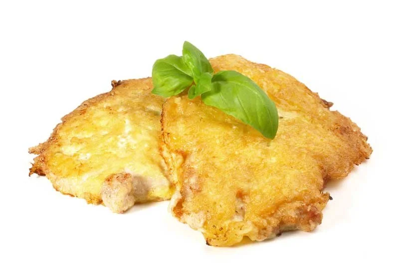 Picatta vom Schwein in Ei-Käsepanade mit Tomatensauce
