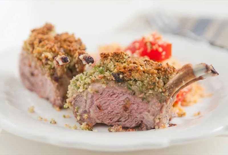 Nierstück vom Lamm (niedergegart) in der Kräuterkruste